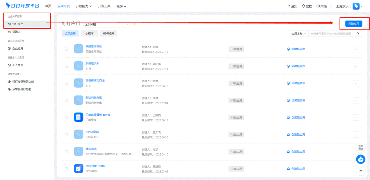 # 一、客户钉钉管理员打开钉钉管理后台创建应用