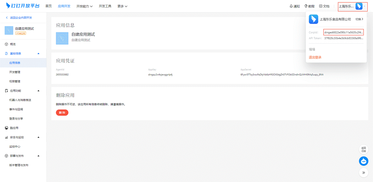 # 二、客户将钉钉的应用凭证参数【APP ID】、【APP Key】、【APP Secret】、CorpID】给到东福