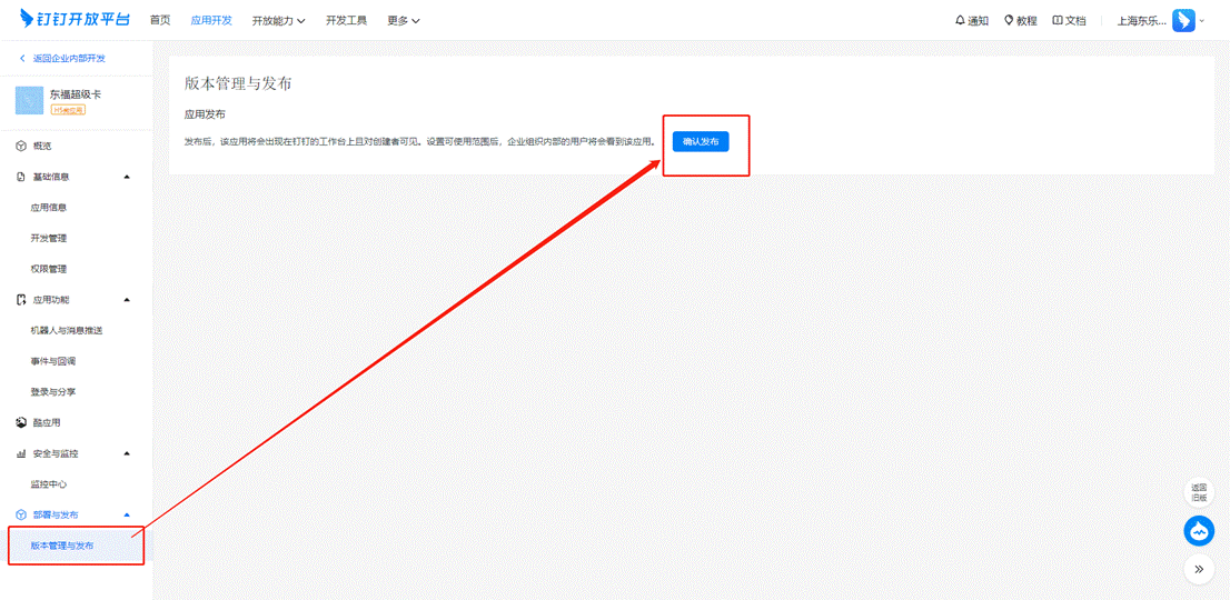 1、选择【版本管理与发布】菜单,选择【确认发布】发布版本