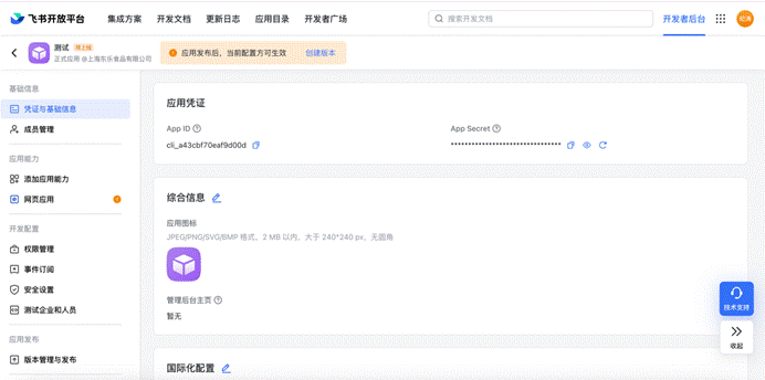 # 二、客户将飞书的应用参数【APP ID】【APP Secret】给到东福