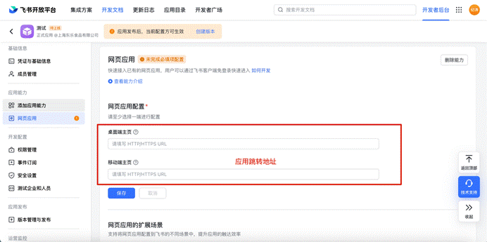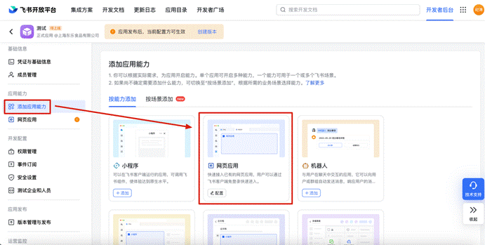 # 三、客户完成网页应用主页地址配置,选择【添加应用能力】,添加【网页应用】