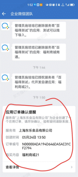 # 2、【客户】客户收到企微消息通知,完成确认免支付的应用订单/完成支付需付费的应用订单