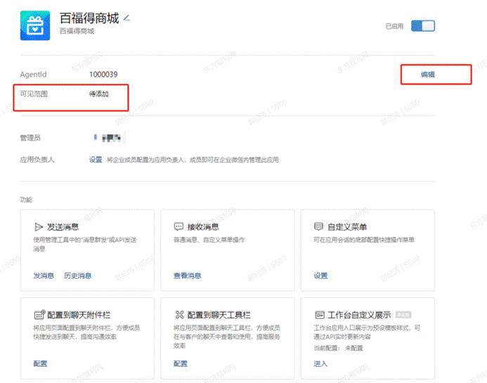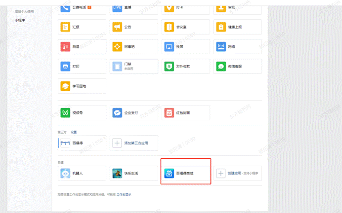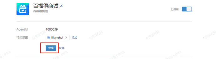 应用上线后,百福得可通知客户,由客户企业微信管理员进入系统配置应用可见范围